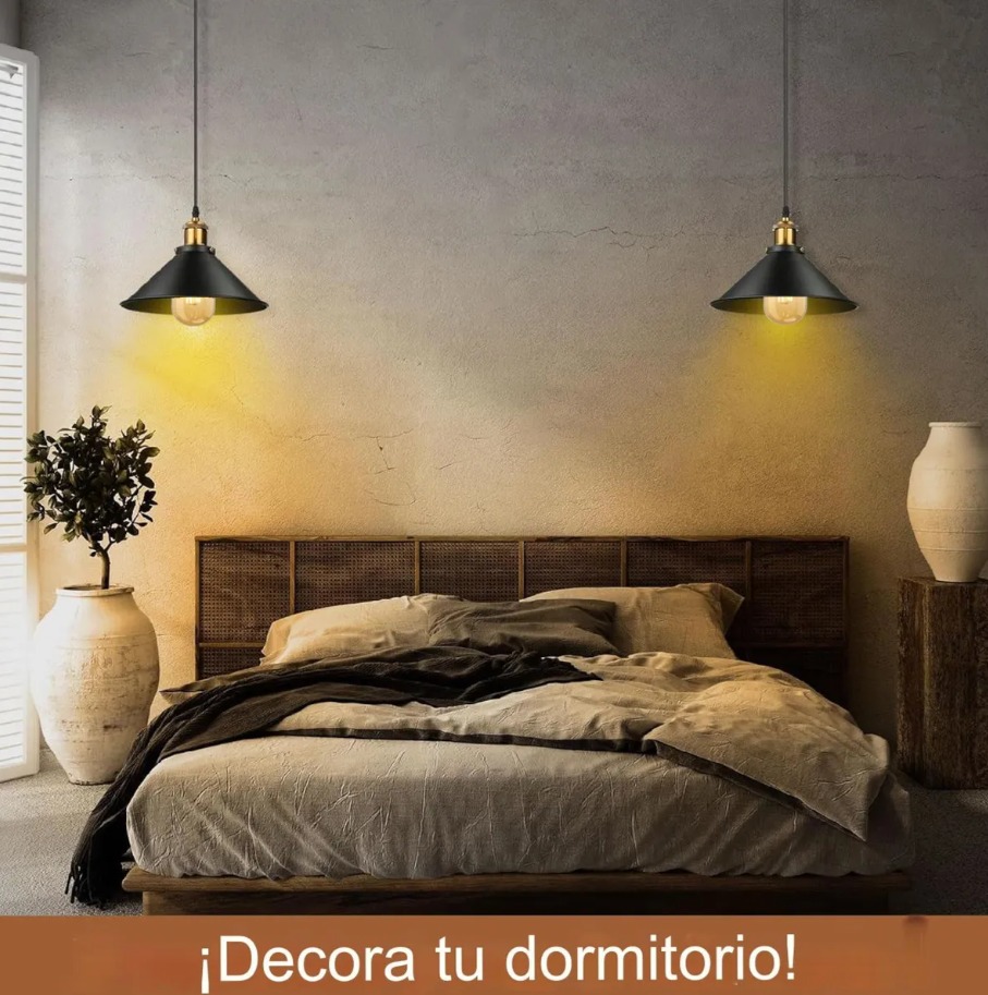 La Lámpara Colgante Industrial Noir Gold combina el encanto vintage con un diseño contemporáneo que aporta carácter y sofisticación. Su acabado en negro mate contrasta con detalles dorados metálicos que añaden un toque premium, mientras su pantalla amplia dirige la luz creando una atmósfera cálida y envolvente.