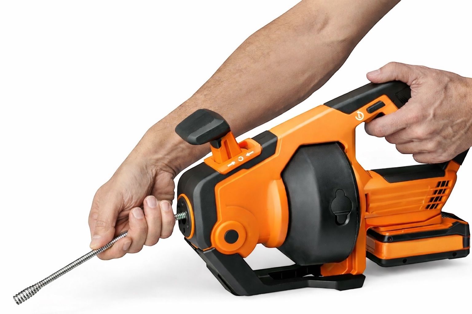 Tambor Cerrado: La guaya se guarda dentro del tambor negro, lo que mantiene la suciedad contenida y evita salpicaduras después de realizar el trabajo.