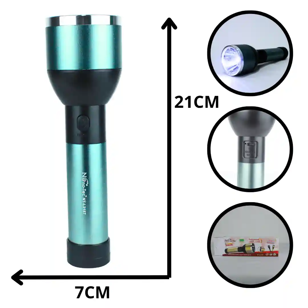 La Linterna Nanotec NT-L3197 es ideal para uso en el hogar, camping, trabajo o situaciones de emergencia. Ofrece iluminación potente en un diseño práctico y ligero, fácil de transportar y almacenar.