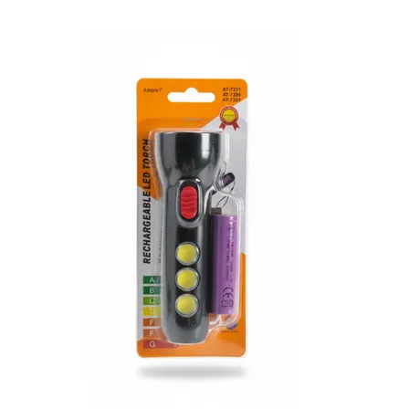 Potencia compacta para cualquier situación. Esta linterna recargable de 13x4x4 cm alberga una potente batería de 1200mAh, ofreciendo gran autonomía y luminosidad. Diseño robusto y ergonómico, ideal para guardar en el coche, llevar de camping, usar en el hogar durante cortes de luz o para trabajos de mantenimiento. Carga por USB, práctica y siempre lista.