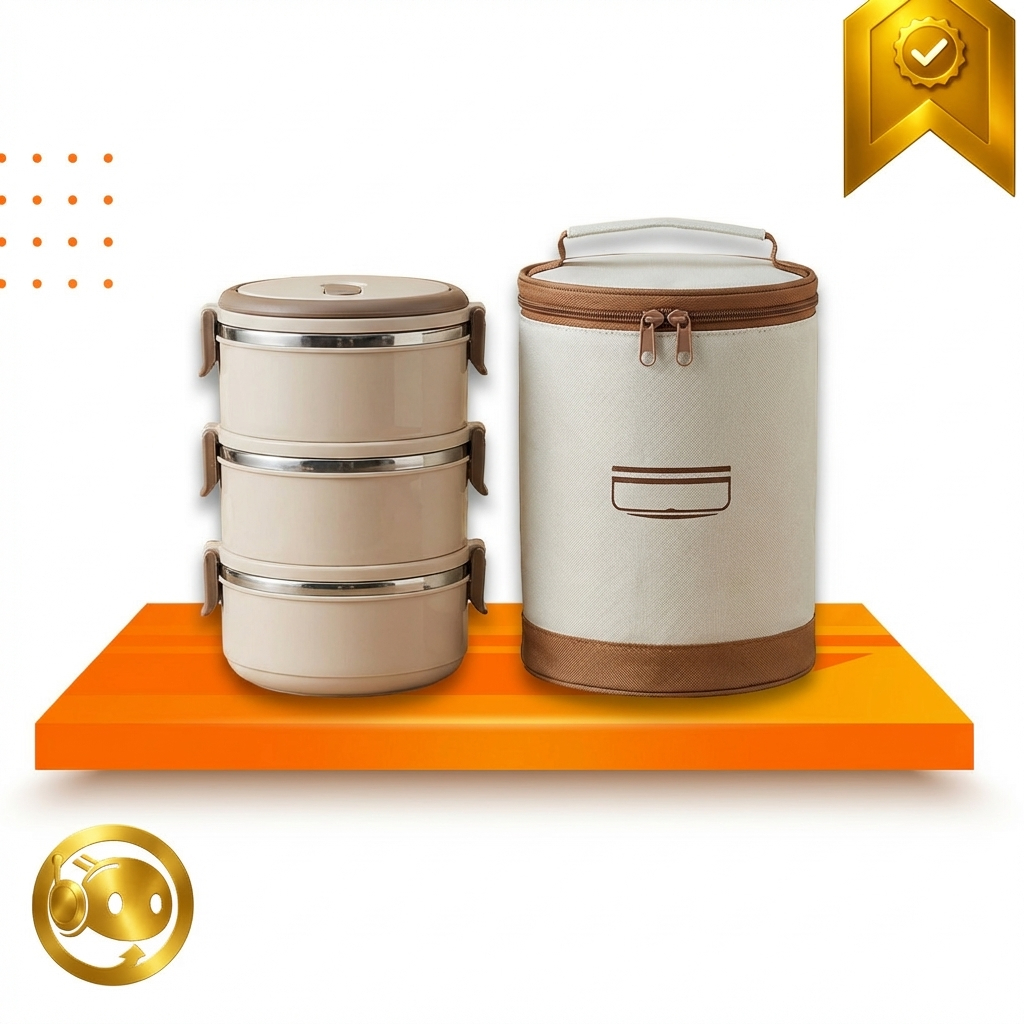 Especificaciones técnicas: Lonchera portátil de 3 niveles apilables; compartimentos separados para organizar alimentos; incluye bolsa térmica con cierre para conservar mejor la temperatura; material resistente, ligero y fácil de limpiar; diseño compacto y fácil de transportar (apta para mochila/bolso); uso recomendado: trabajo, colegio, universidad y viajes.