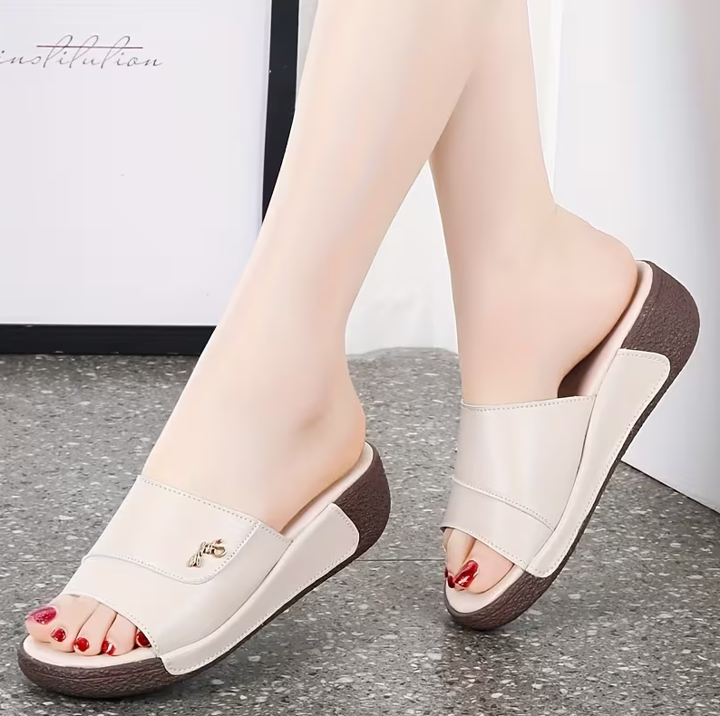 Estilo: Sueco de plataforma baja con punta abierta (Peep-toe). Diseño ergonómico pensado para la comodidad durante todo el día.