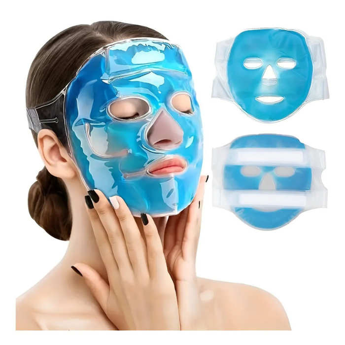 Máscara de gel reutilizable diseñada para uso frío o tibio, ideal para brindar sensación de descanso y frescura en el área de los ojos, rostro y frente. Puede colocarse en el refrigerador o congelador para efecto refrescante, o calentarse en microondas en intervalos cortos para uso tibio. Está fabricada en material plástico flexible y resistente, suave al contacto con la piel y cómoda de usar. Mantiene la temperatura durante aproximadamente 15 a 20 minutos, tiempo recomendado para su aplicación. Cuenta con un tamaño aproximado de 20 cm de alto por 19 cm de ancho, ofreciendo una cobertura amplia, e incorpora tiras laterales ajustables que permiten adaptarla fácilmente al contorno del rostro para mayor estabilidad y comodidad durante su uso. Es práctica para momentos de cansancio visual, tensión facial o para relajación después de largas jornadas frente a pantallas.