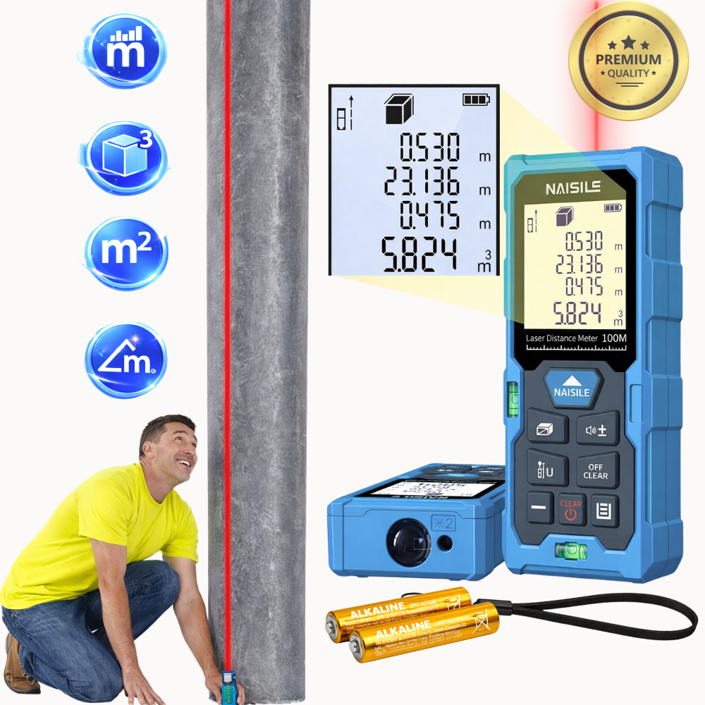 Medidor Laser Digital De Distancia Metro Precision eficiencia ¿Qué es? Es un medidor de distancia láser digital diseñado para medir con precisión distancias, áreas y volúmenes de forma rápida y sencilla. Es ideal para trabajos de construcción, remodelación, arquitectura, carpintería y mediciones en interiores o exteriores, ofreciendo resultados exactos sin necesidad de cintas métricas tradicionales. ¿Qué incluye la compra? • 1 medidor de distancia láser • 2 pilas AAA • 1 Correa de mano • 1 caja de empaque Características: • Alcance de medición de hasta 100 metros. • Láser rojo de alta precisión para mediciones rápidas y exactas. • Pantalla LCD clara y fácil de leer. • Doble nivel integrado para mayor precisión al medir. • Función para medir distancia, área y volumen. • Diseño compacto y portátil. • Botones de acceso rápido para funciones de medición. • Apagado automático para ahorrar batería. Modo de uso: • Enciende el dispositivo presionando el botón de encendido. • Apunta el láser hacia el punto que deseas medir. • Presiona el botón de medición para obtener la distancia. • Revisa el resultado en la pantalla LCD del dispositivo. • Utiliza las funciones adicionales para calcular áreas o volúmenes. Detalles: • Medición rápida con solo presionar un botón. • Nivel de burbuja integrado para mayor precisión. • Diseño ergonómico para fácil manejo. • Correa de seguridad para transporte. • Ideal para profesionales y uso doméstico. Dimensiones: Alto: 10.9 cm Ancho: 5.02 cm Grosor aproximado: 5.02 cm Peso: 91 g Colores: Azul con negro. Talla: Tamaño compacto portátil. Materiales: • Carcasa de plástico ABS resistente • Componentes electrónicos de medición láser • Pantalla LCD Advertencias: • No apuntar el láser directamente a los ojos. • Mantener fuera del alcance de niños. • Evitar golpes fuertes o exposición a humedad excesiva. Garantía: Garantía por defectos de fabricación.