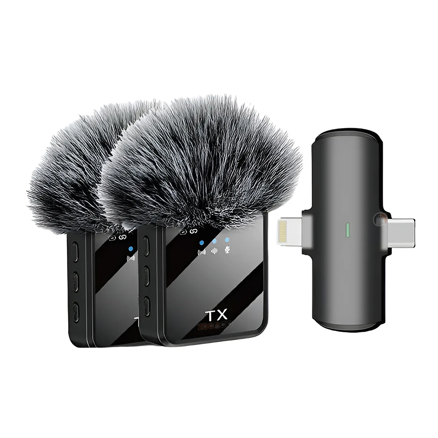 Micrófonos inalámbricos con transmisores compactos, ideales para grabaciones profesionales en exteriores e interiores. Incluyen protectores antiviento tipo “dead cat” para reducir el ruido, indicadores de conexión y batería, además de cable USB-C para carga rápida. Perfectos para creadores de contenido, entrevistas y producción audiovisual. – Micrófono Solapa Peludo TX F15-2 Set X2 – Con interfaz Tipo C y Lightning – Compatible con iPhone, teléfonos Android, cámaras, computadoras portátiles, computadoras de escritorio, tabletas y altavoces – Reducción de Ruido DSP – Potencia Nominal: 10W – Relación Señal-Ruido: =75dB – Capacidad de batería: 300mAh – Micrófono omnidireccional – Batería Interna Recargable – Distancia 10 a 20 Metros – Plug and play
