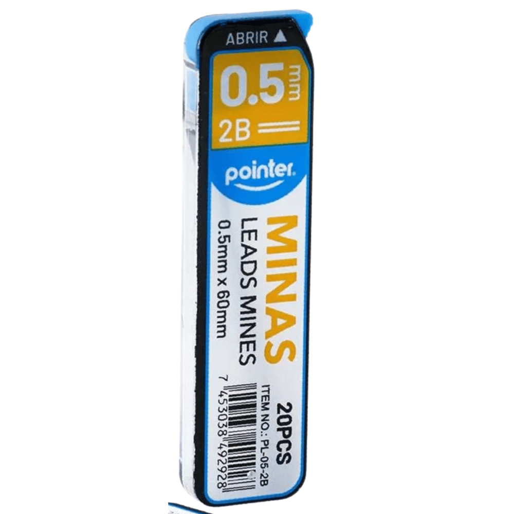 Minas Pointer 0.5 mm grado 2B ideales para escritura suave, dibujo técnico y trazos más oscuros. Ofrecen excelente gradual, buena resistencia y acabado uniforme en papel.