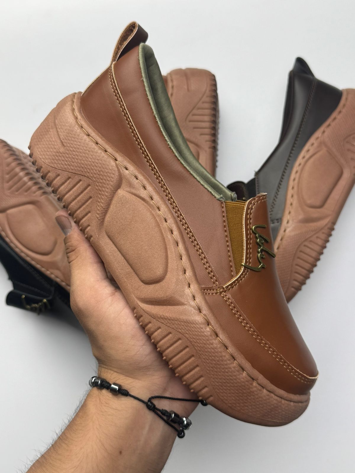 Calzado nacional, en materiales sintéticos, herraje cromado, forro interno licrado, suela expansor liviana inyectada, cosidos para mayor seguridad, altura de 5cm.