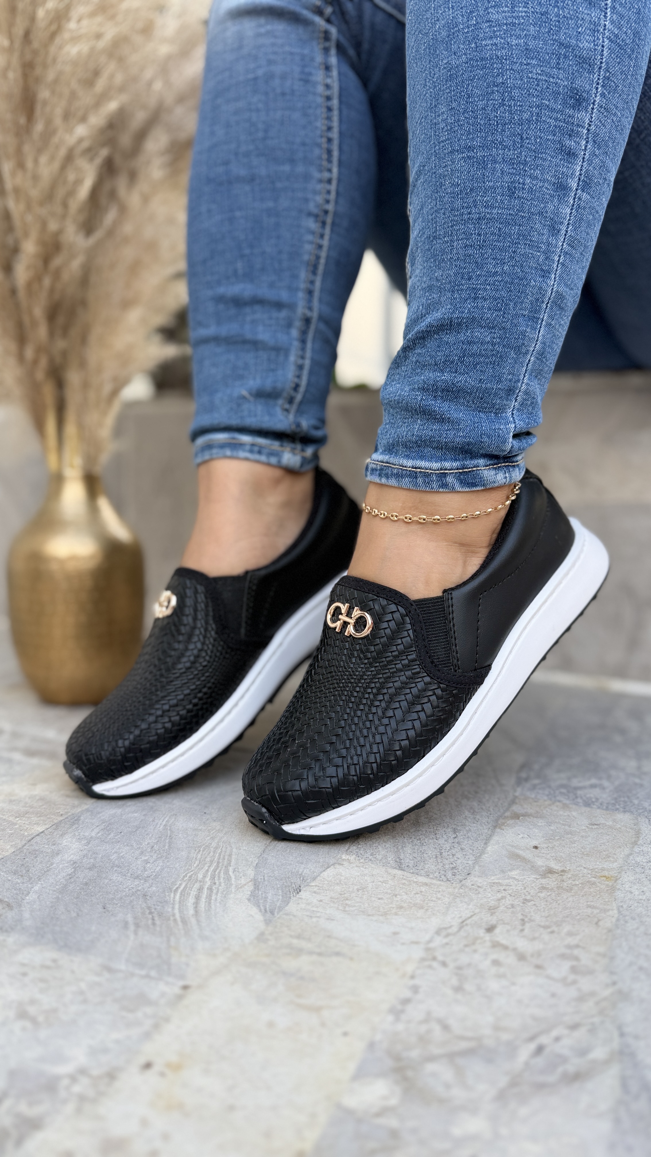 Mocasín Génova disponible en tres colores negro, miel y beige. Desde la talla 34 hasta la 40, en material sintético, adorno metálico, plantilla confort, con suela en spanso, bicolor, cocido……..