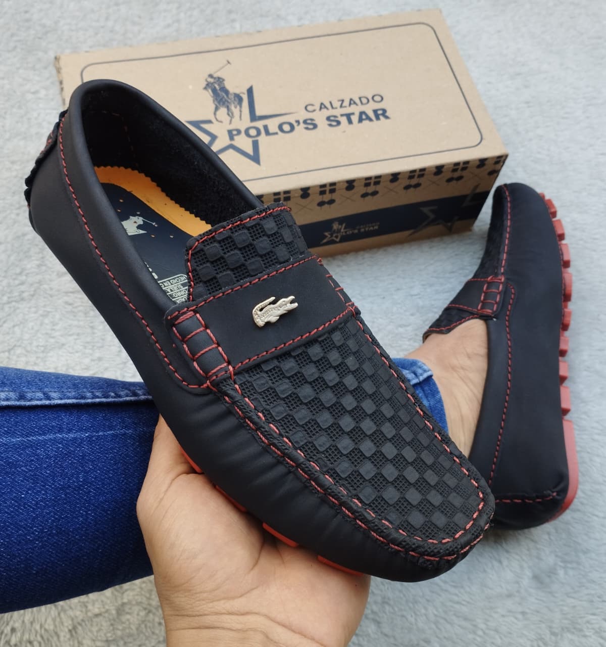 Mocasin Hombre 213 Negro con rojas Rep
