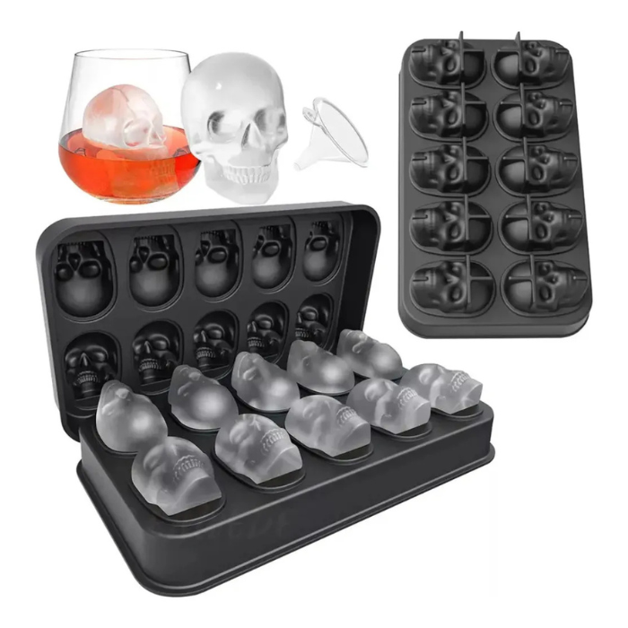 Transforma tus bebidas en una experiencia única con el Molde de Hielo Calavera 3D de silicona. Este innovador molde cuenta con 10 ranuras que te permiten crear impresionantes cubitos de hielo en forma de calavera, perfectos para fiestas, reuniones o simplemente para darle un toque especial a tus cócteles. Fabricado en silicona de alta calidad, este molde es antiadherente y reutilizable, lo que significa que podrás disfrutar de tus calaveras de hielo una y otra vez. Además, es apto para lavavajillas, facilitando su limpieza y mantenimiento. Incluye 2 embudos que simplifican el proceso de llenado, asegurando que cada ranura se llene de manera precisa y sin derrames. Sorprende a tus amigos y familiares con estas creativas y divertidas formas de hielo que elevarán cualquier bebida a otro nivel. Ideal para quienes buscan un toque original en sus eventos, este molde es una excelente adición a tu colección de utensilios de cocina. Dale vida a tus bebidas y disfruta de la diversión que solo el Molde de Hielo Calavera 3D puede ofrecer.