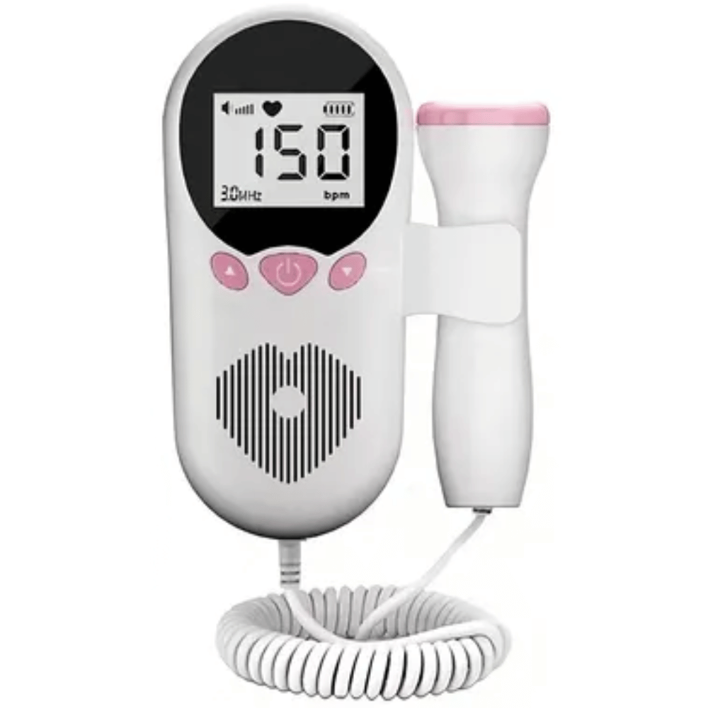Dispositivo portatil diseñado para detectar y escuchar los latidos del bebe durante el embarazo mediante un sensor manual. Su sistema permite identificar la frecuencia cardiaca fetal de manera clara a traves de la pantalla digital integrada.