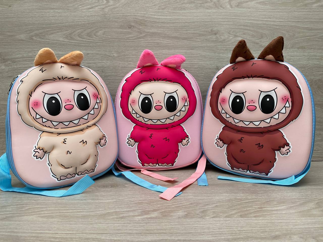 Mochila infantil de tapa dura, diseño de relieve y estampado de labubu, variedad de colores