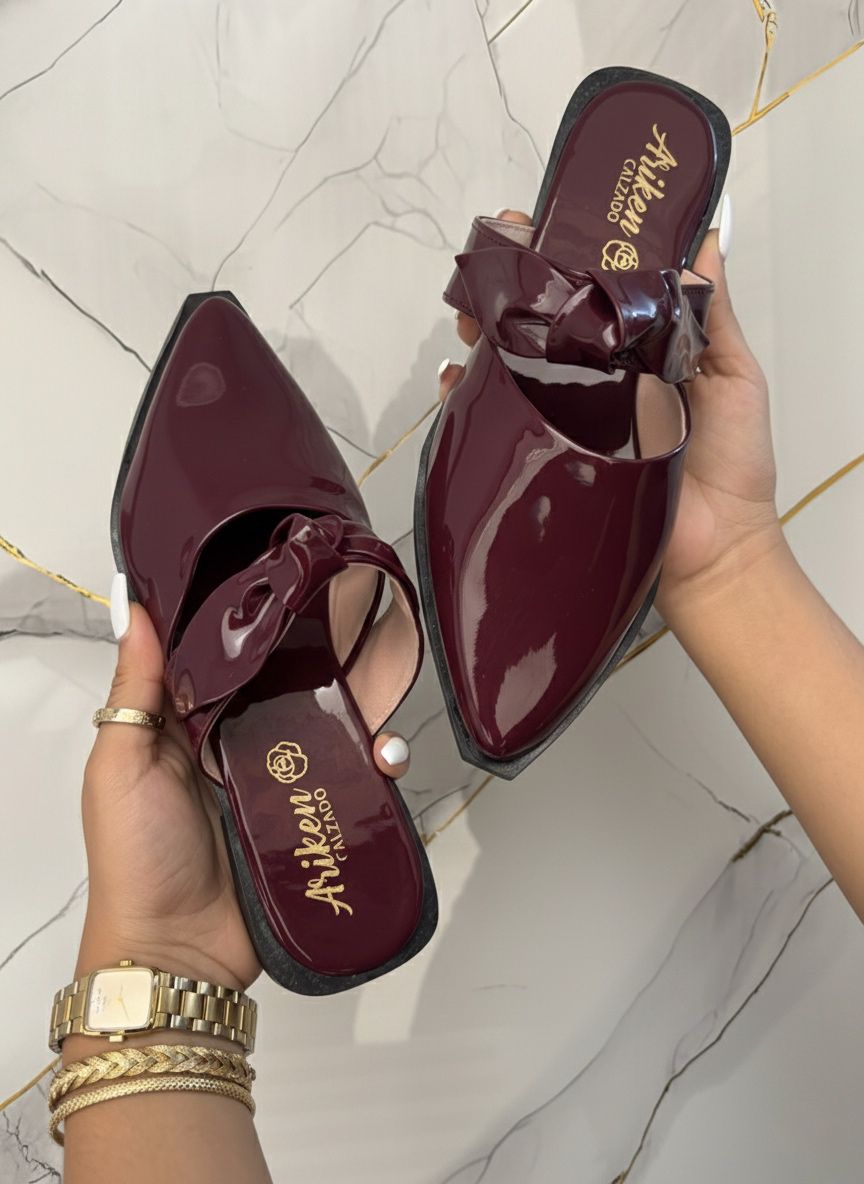 Eleva tu outfit con estos mules de punta fina, diseñados para mujeres que aman verse elegantes sin sacrificar comodidad. Su acabado brillante y detalle frontal aportan un toque moderno y femenino perfecto para cualquier ocasión.