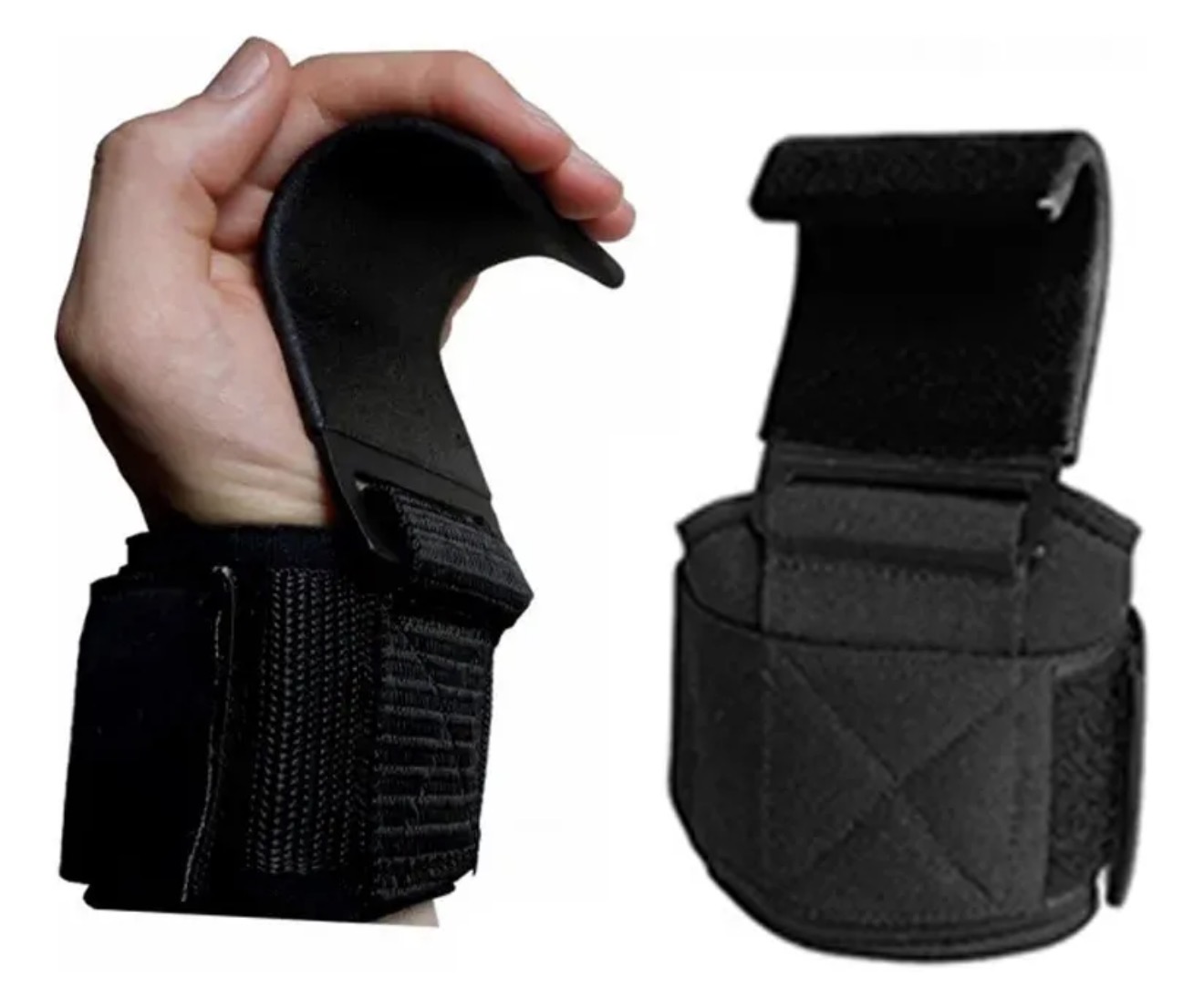 Estos son ganchos de levantamiento de pesas, también conocidos como lifting hooks o straps con gancho. Se utilizan para mejorar el agarre y reducir la fatiga de las manos durante entrenamientos de fuerza.