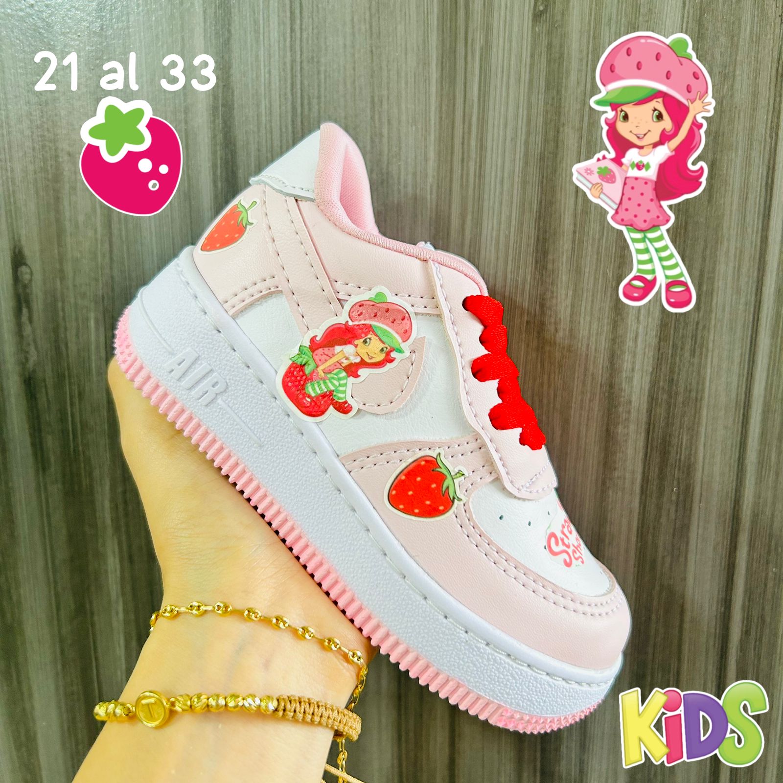 Estos tenis sublimados cuentan con un diseño encantador inspirado en una dulce personaje animada estilo fresita, junto con detalles frutales que hacen cada par único, divertido y lleno de ternura. 💖🍓