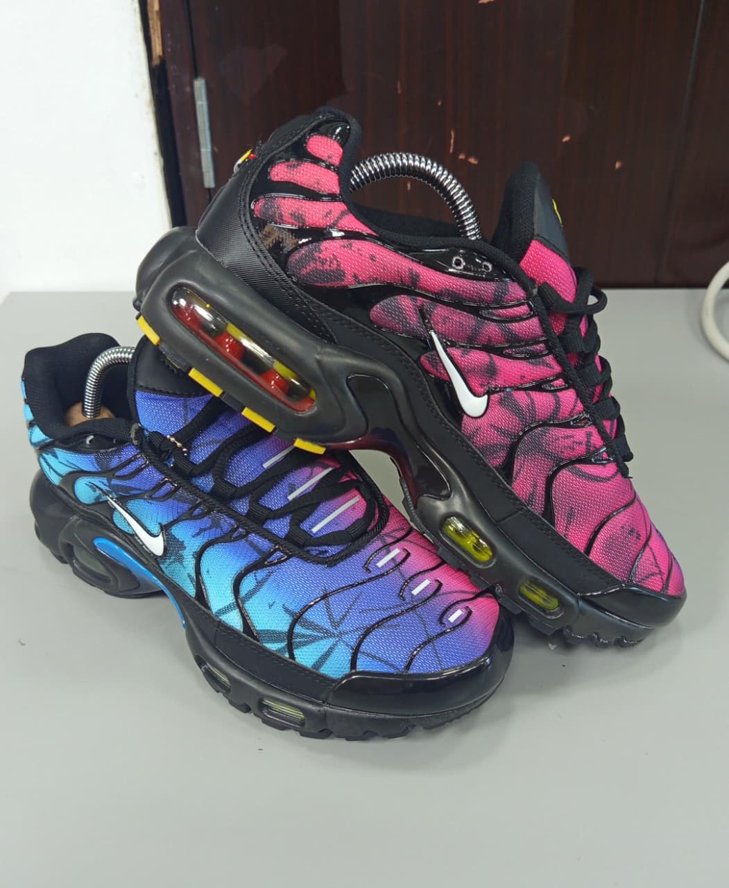 El producto que ves es el Nike Air Max Plus (TN), un icónico modelo de zapatillas deportivas diseñado para ofrecer estilo urbano y rendimiento atlético. Funciona gracias a su sistema de amortiguación Air Max, que incorpora cápsulas de aire visibles en la suela para brindar comodidad y soporte en cada paso. Su principal característica es el diseño ondulado en la parte superior, acompañado de degradados de colores vibrantes que lo convierten en un referente de moda. Además, cuenta con materiales resistentes, suela de goma duradera y un ajuste firme que lo hacen ideal tanto para actividades deportivas como para uso casual, destacando por su estética llamativa y su confort prolongado.