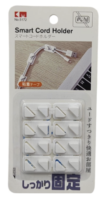 Organizador adhesivo para cables Smart Cord Holder, diseñado para mantener los cables ordenados y en su lugar. Permite fijar fácilmente cables de cargadores, audífonos, USB o cables de computador sobre escritorios, mesas o paredes, evitando enredos y desorden.