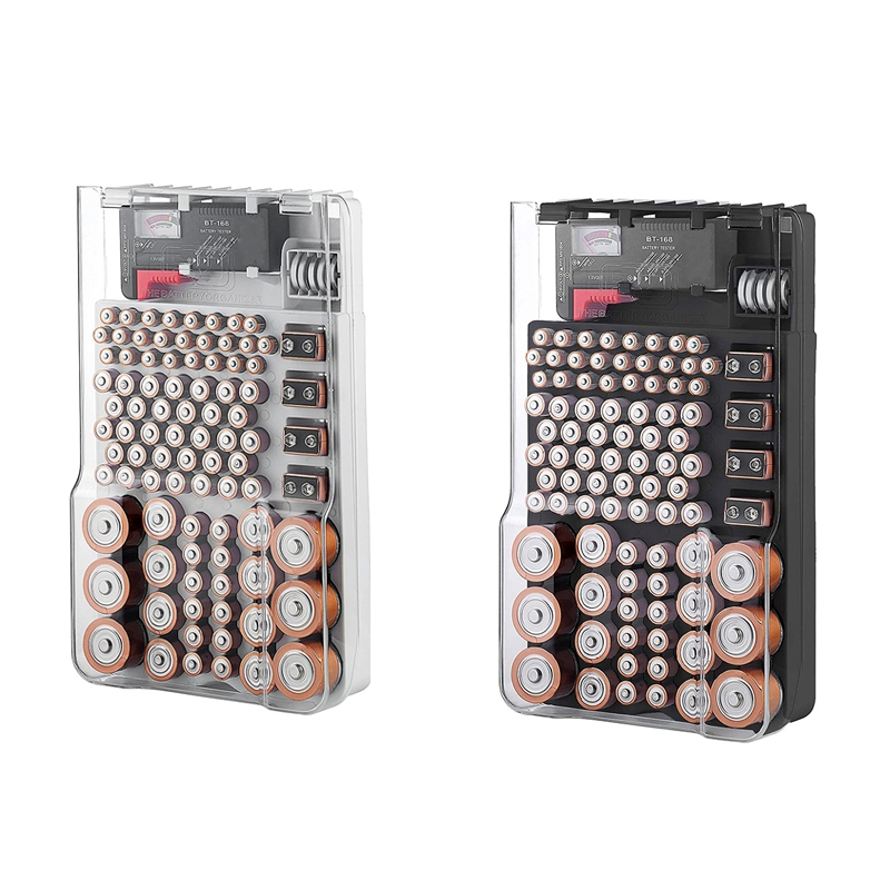 Esta caja está especialmente diseñada para almacenar baterías. Le permite organizarlos y tenerlos a su alcance todo el tiempo. Adecuado para baterías convencionales, alcalinas y recargables, incluye 98 baterías (no incluidas).
