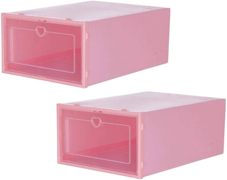 Esta caja organizadora de zapatos de plástico ROSADO con puerta transparente es ideal para mantener el calzado ordenado y protegido del polvo.