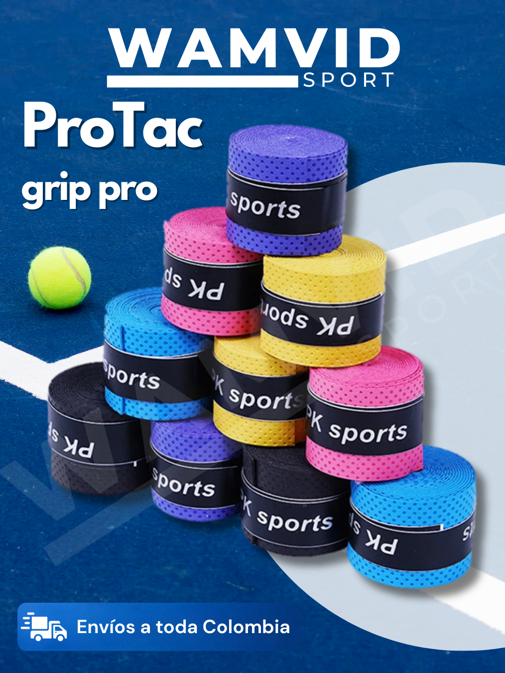 Overgrip deportivo diseñado para mejorar el agarre, control y comodidad en el uso de raquetas de tenis, pádel, bádminton y squash. Su superficie antideslizante con microperforaciones permite una mejor absorción del sudor, proporcionando mayor estabilidad y evitando que la raqueta se deslice durante el juego.