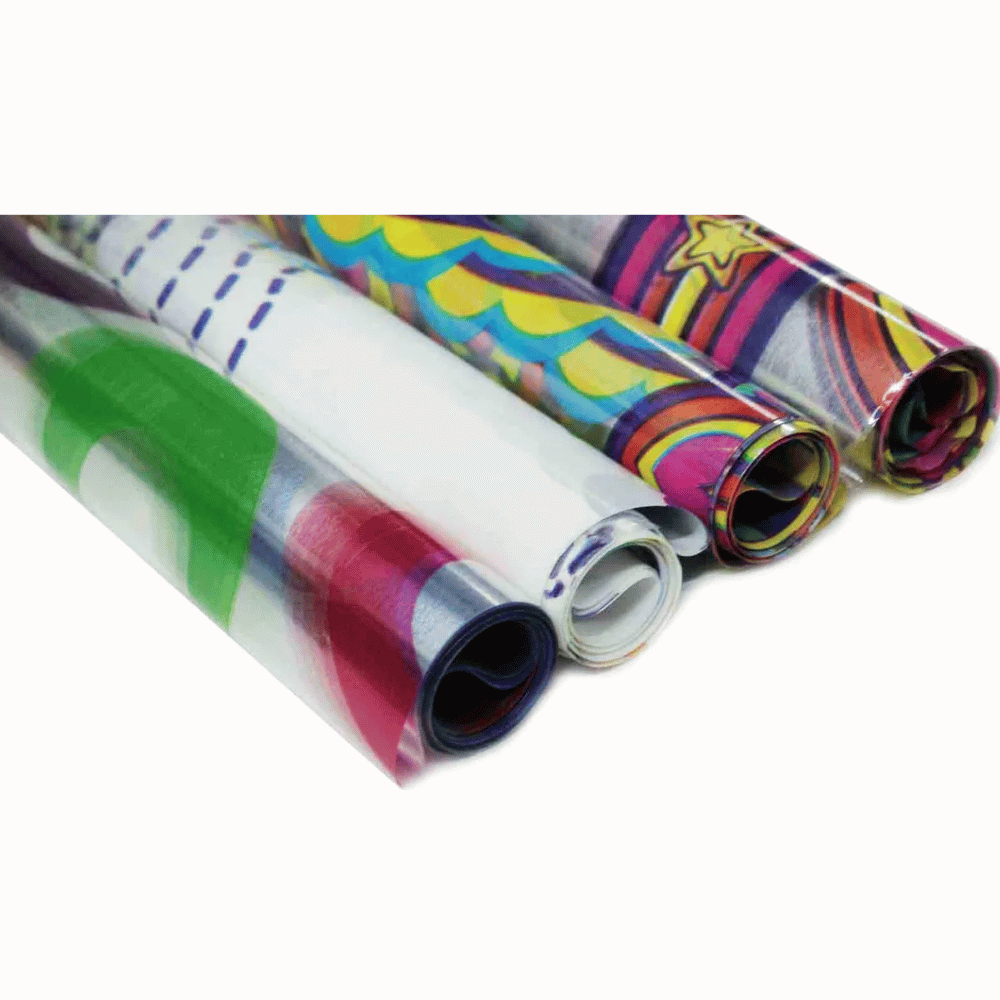 Este papel celofán estampado combina transparencias y diseños llamativos que resaltan en cualquier proyecto creativo. Su superficie brillante permite que los colores se vean vivos y atractivos, ideal para envolver regalos o decorar espacios.