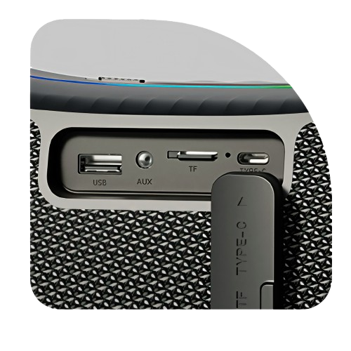 Conectividad Total: Bluetooth 5.3 para una conexión estable, además de entradas USB, Micro SD y Auxiliar.