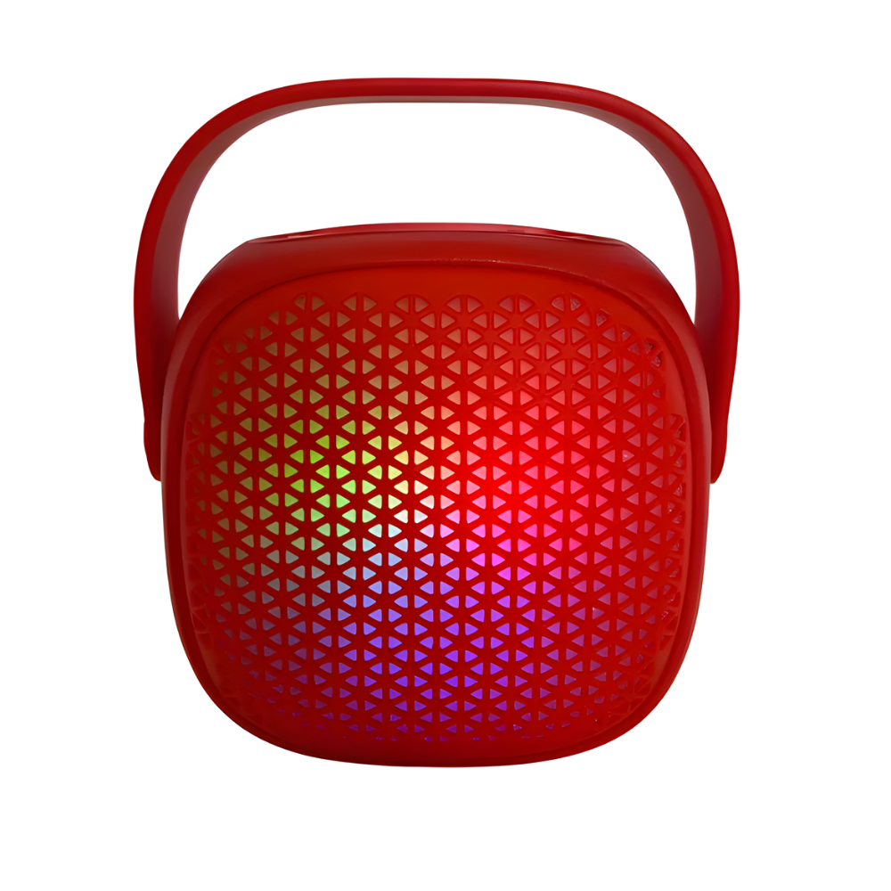 Este parlante portátil cuenta con una estructura compacta y elegante, ideal para quienes buscan un equipo fácil de transportar sin perder calidad de sonido. Su conectividad Bluetooth permite disfrutar de música inalámbrica desde dispositivos móviles, y su batería recargable garantiza horas de uso continuas. El diseño incluye luces LED, que se iluminan de manera dinámica, creando un ambiente visual que complementa la música.
