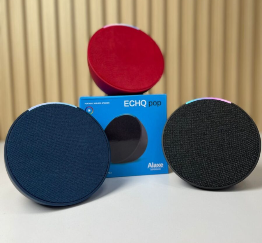 Altavoz inalámbrico portátil de formato circular y perfil plano, diseñado para la reproducción de audio mediante conexión inalámbrica. Presenta un diseño compacto, con recubrimiento frontal de tela acústica y carcasa rígida perimetral. El producto está orientado al uso personal en interiores, con portabilidad básica y operación autónoma mediante batería interna recargable.