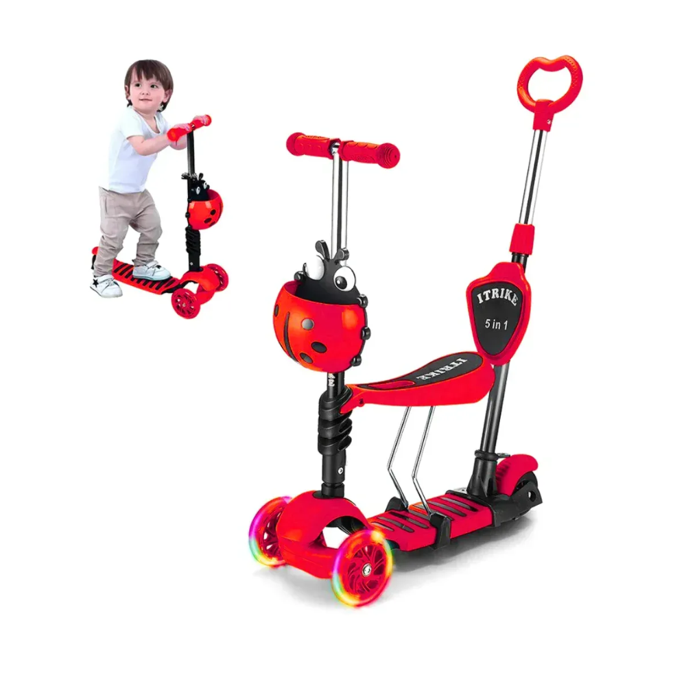 Versatilidad Total: Diseño 5 en 1 modelo Mariquita (puedes usarlo con asiento o como scooter tradicional).