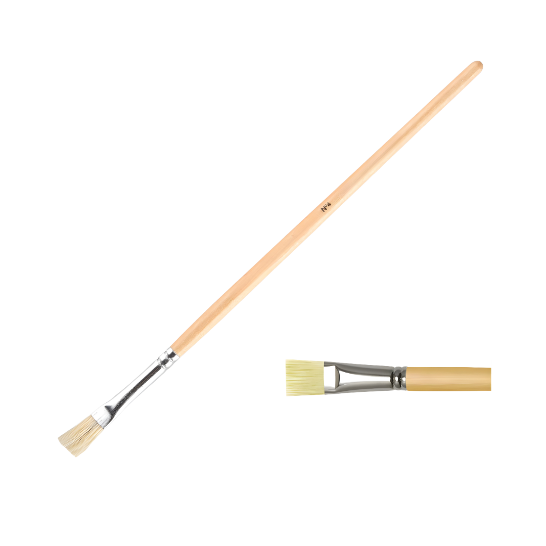 Pincel plano número 4 diseñado para trazos rectos y rellenos controlados en áreas pequeñas y medianas. Su forma permite definir bordes y trabajar fondos con precisión.