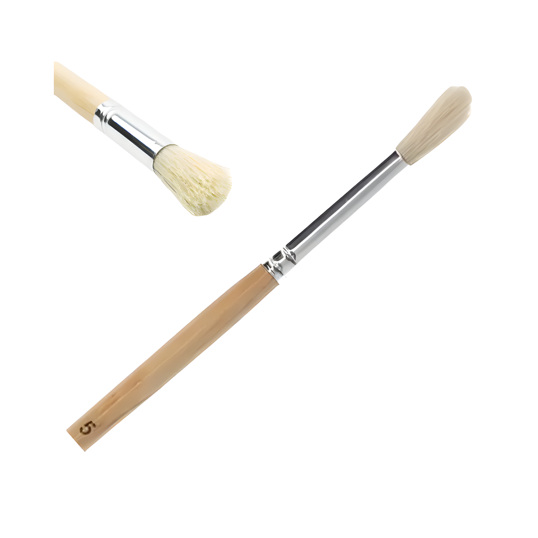 Pincel redondo número 5 que combina precisión y cobertura moderada. Permite crear líneas definidas y detalles con mayor fluidez.