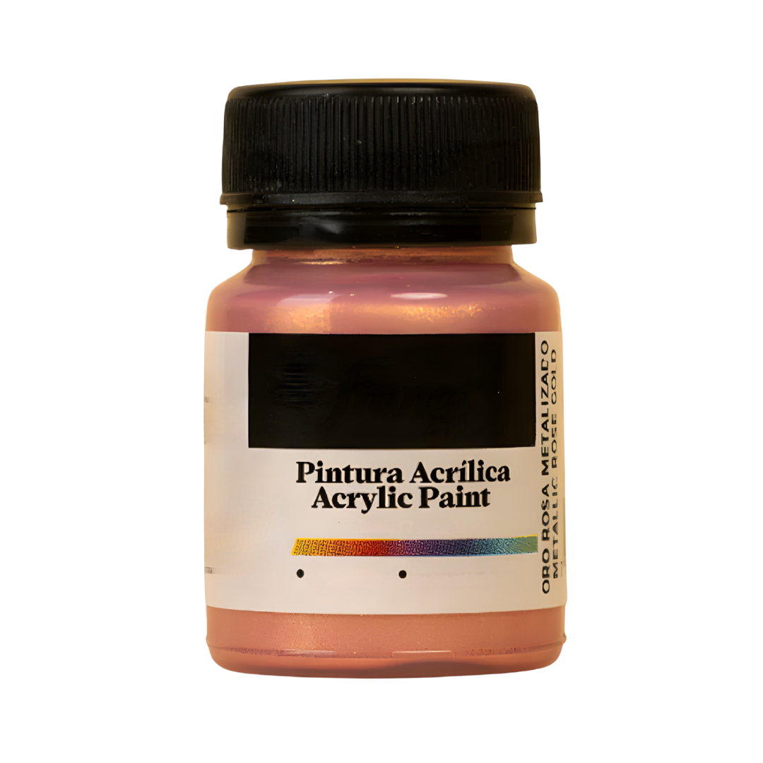 Presentación de 30 ml en tono oro rosa metalizado, ideal para detalles brillantes y acabados decorativos en manualidades y proyectos escolares.