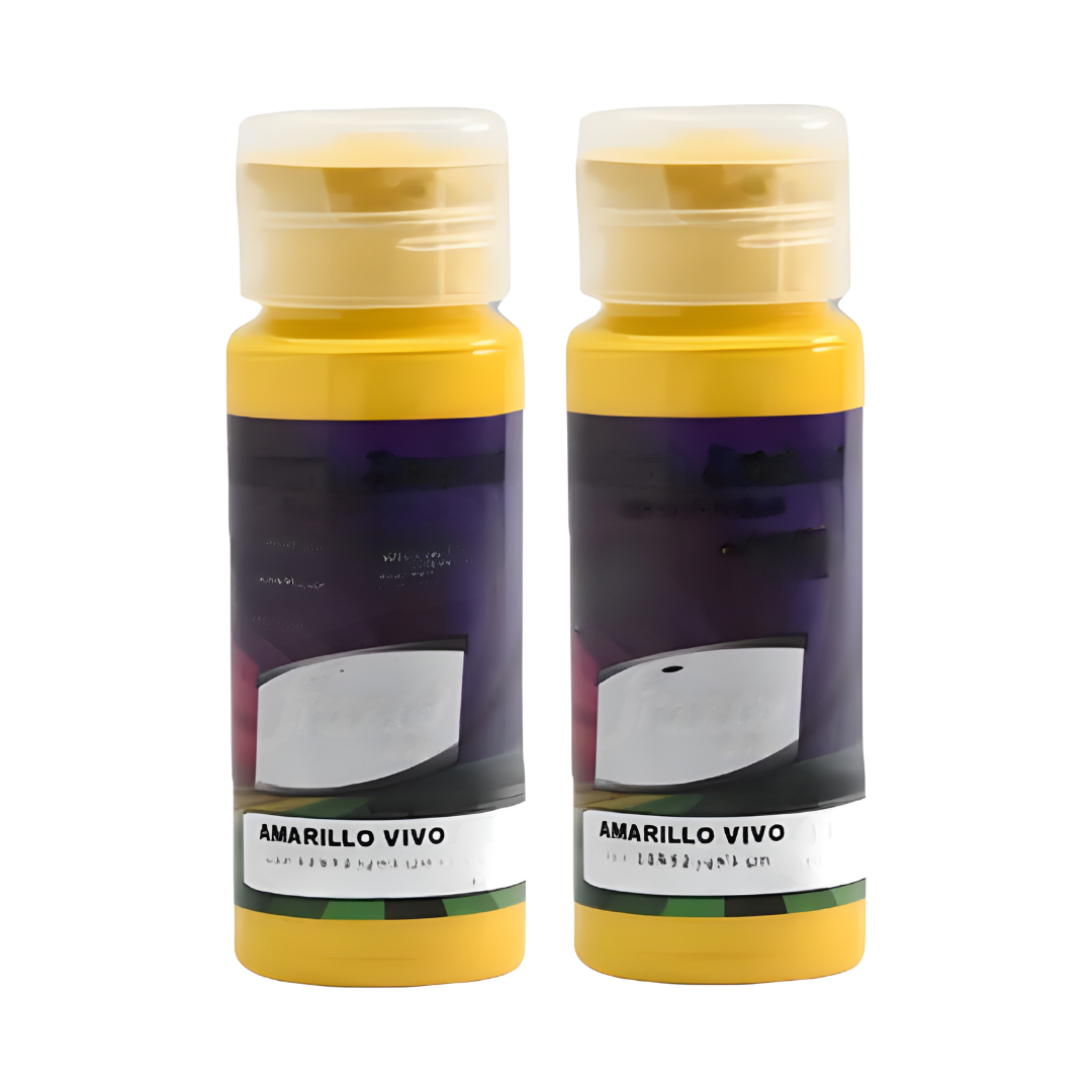 Pintura acrílica al frío en presentación de 60 ml, tonalidad amarillo vivo, adecuada para composiciones artísticas y decorativas.