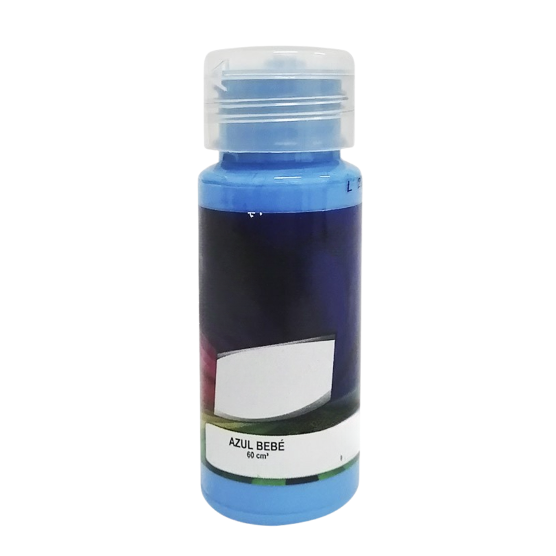 Pintura acrílica al frío en presentación de 60 ml, tonalidad azul bebe intensa adecuada para composiciones artísticas y decorativas.
