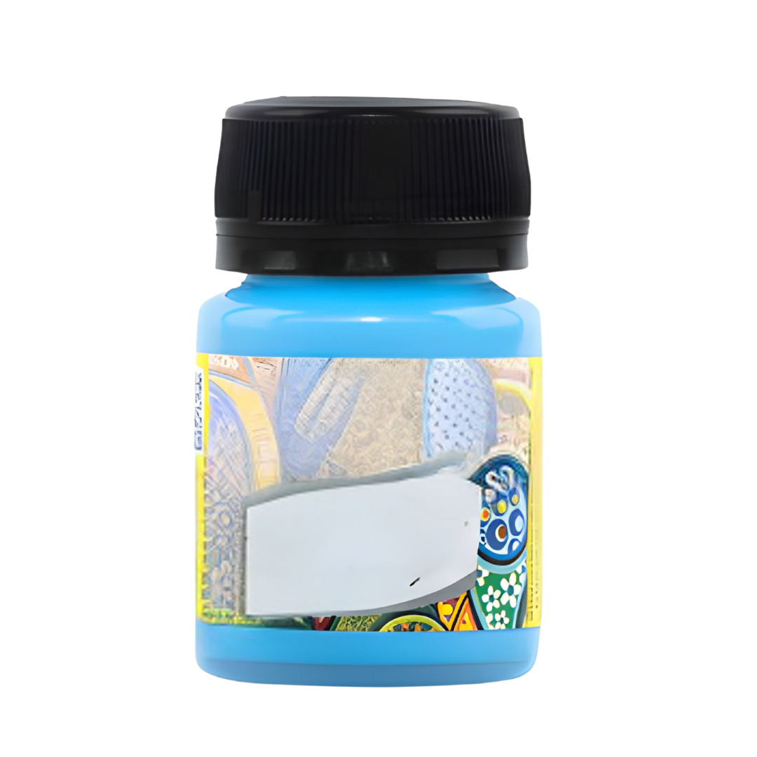 Pintura acrílica formulada para aplicación sobre tela en tono azul bebe, ideal para personalización de prendas y accesorios. Su presentación de 30 cm³ permite control preciso en detalles y diseños pequeños.