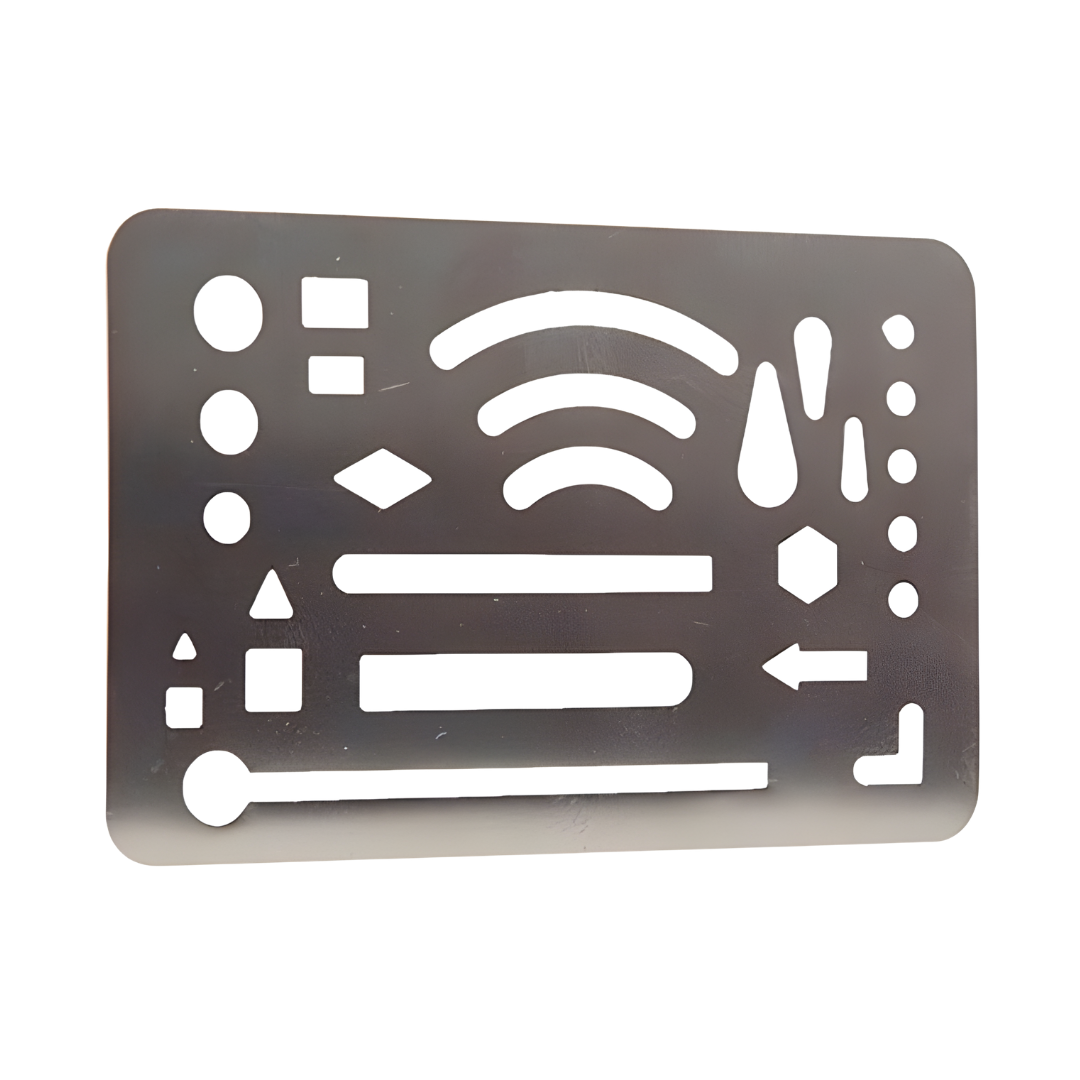 Plantilla metálica diseñada como guía para trazos técnicos y apoyo en procesos de dibujo estructural. Su material rígido ofrece estabilidad y precisión en delineado.