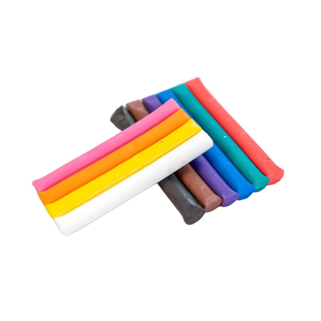 Set de plastilina con 10 barras delgadas y cortas, ideal para detalles pequeños y trabajos escolares básicos. Su consistencia facilita moldeado sencillo y mezcla entre colores.