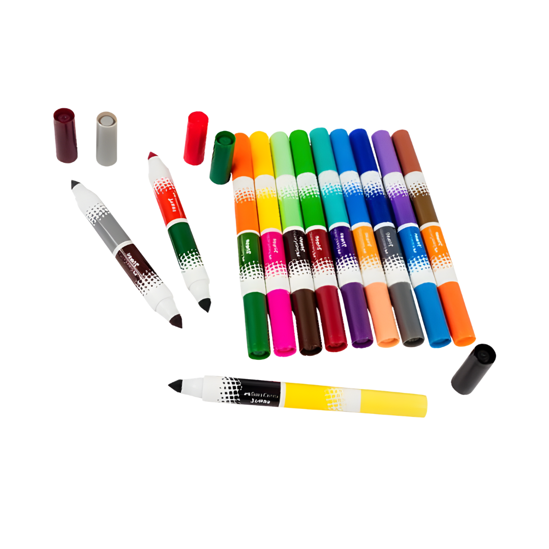 Los plumones bicolor jumbo ofrecen dos colores en cada marcador, permitiendo mayor variedad al momento de dibujar y colorear. Son ideales para estudiantes que desean crear ilustraciones más llamativas y creativas.