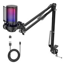 Micrófono USB para juegos para PCPodcast Microphone Kit para streaming, micrófono de condensador con silenciamiento rápido,