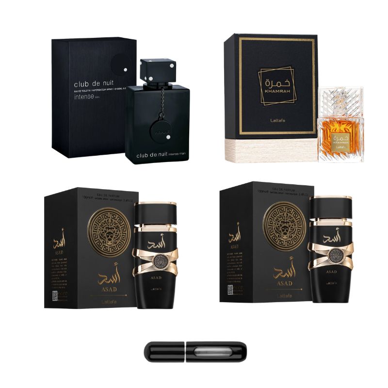 4 PERFUMES CLUB THE NUIT ,KHAMRA ,2 ASAD ,MAS UN PERFUMERO RECARGABLE