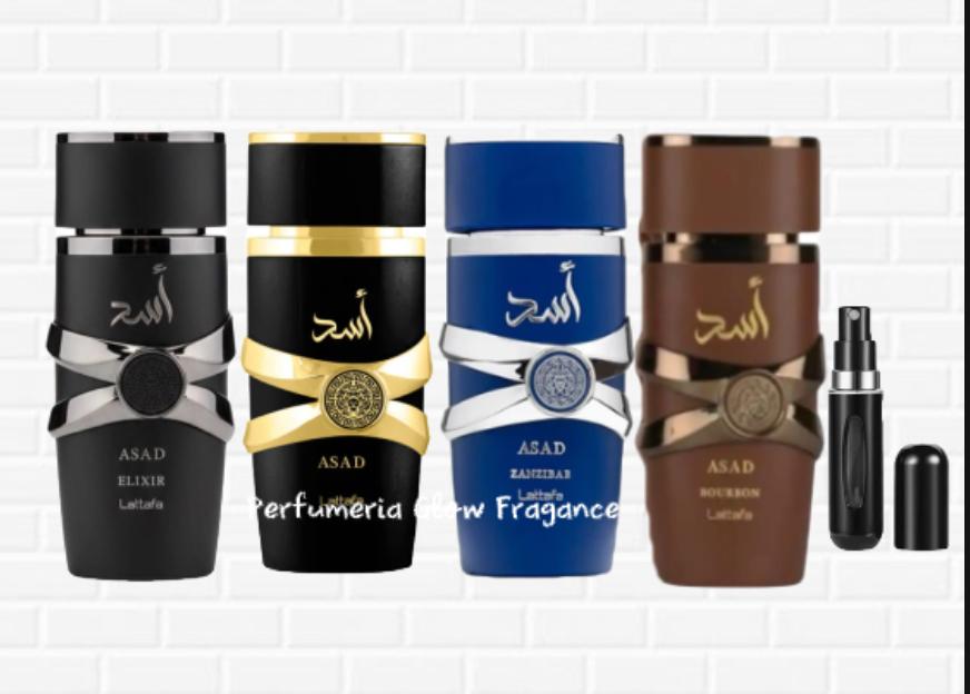 4 PERFUMES ASAD, ASAD ELIXIR, ZANZIBAR, ASAD BOURBON MAS 1 PERFUMERO