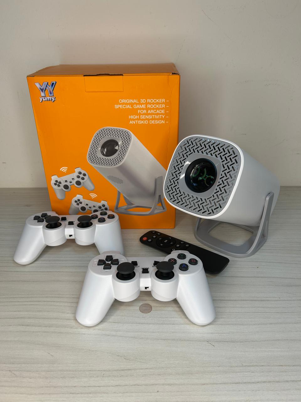 Disfruta de una experiencia retro y moderna al mismo tiempo con este Mini Proyector Gamer 2 en 1, que incluye consola integrada y 2 controles inalámbricos.
