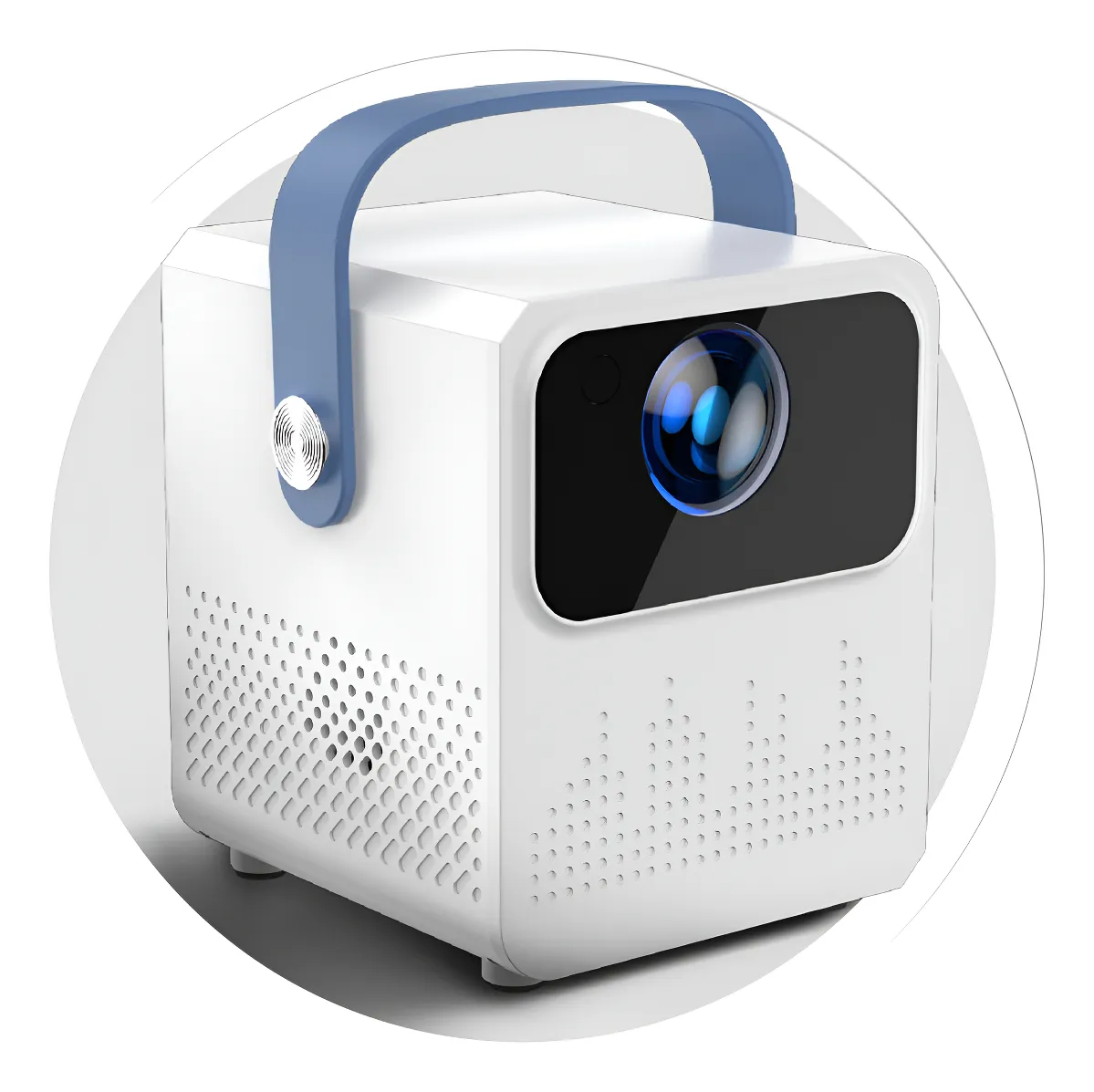 Su diseño compacto, moderno y portátil con manija superior lo hace perfecto para hogar, oficina, viajes ✈️ y noches de cine al aire libre 🌙.