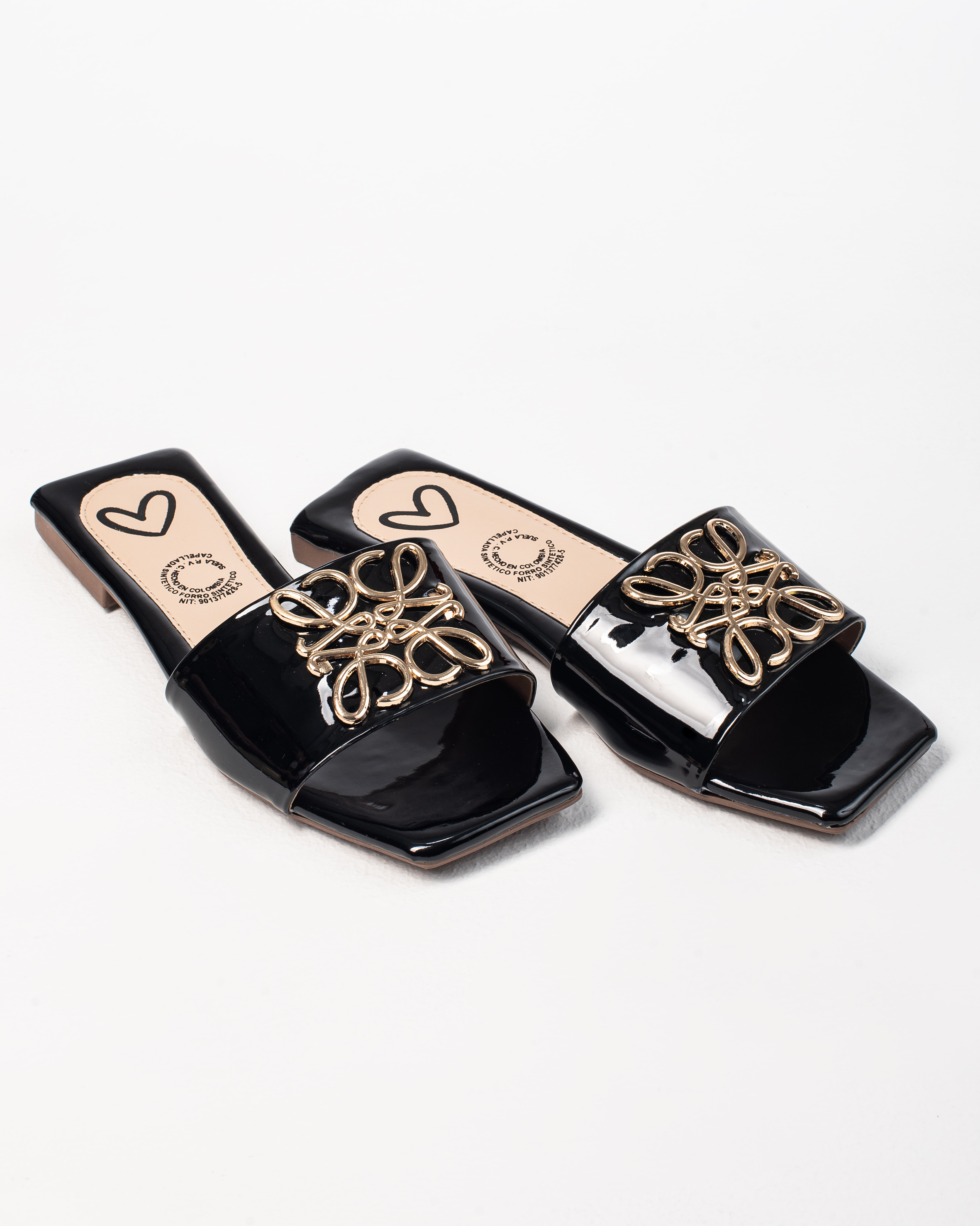 La Sandalia Plana R266 de YLO Shoes es una pieza elegante y protagonista, pensada para mujeres que buscan un diseño sofisticado sin esfuerzo. Su silueta de pala ancha con acabado tipo charol se complementa con un aplique metálico dorado, convirtiéndola en una sandalia que eleva cualquier look.
