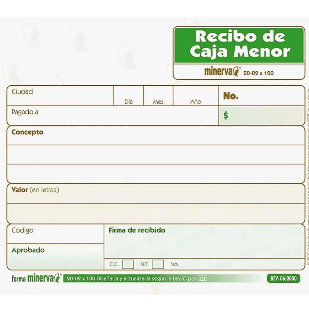 Recibo Caja Menor Minerva TalonarioX100