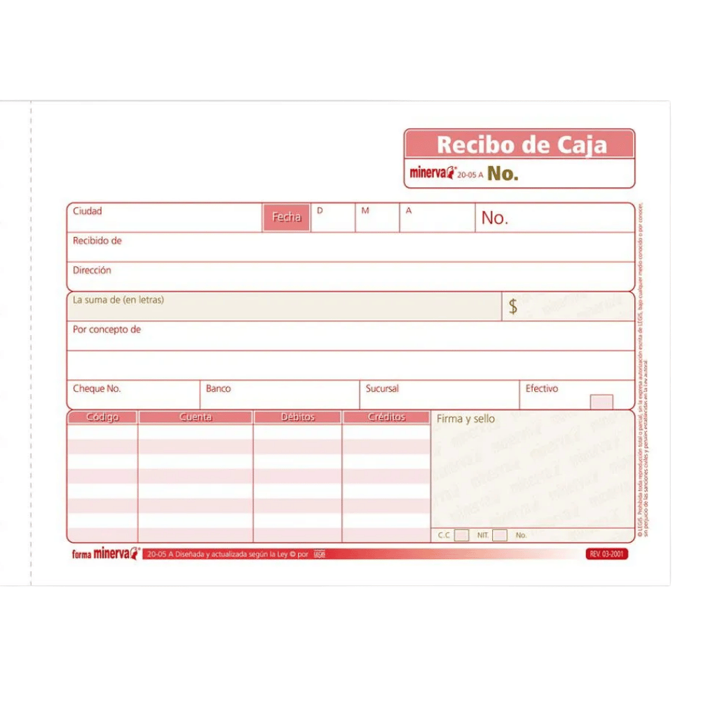 Talonario de recibos de caja diseñado para registrar ingresos y movimientos de dinero dentro de negocios, oficinas o actividades comerciales. Su formato facilita el control administrativo al permitir documentar cada transacción de manera clara y organizada.
