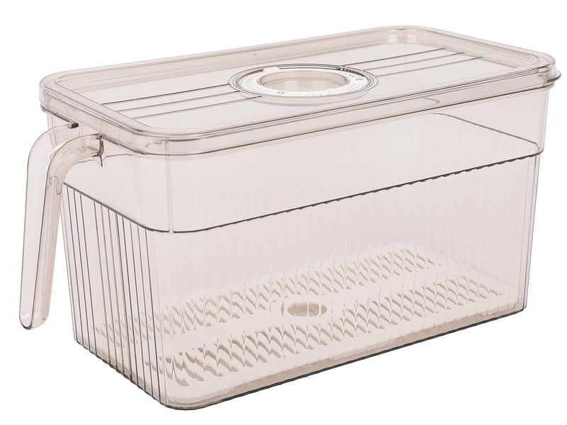 {"type":"doc","content":[{"type":"paragraph","attrs":{"align":null,"indent":null},"content":[{"type":"text","text":"Recipiente de almacenamiento dise\u00f1ado espec\u00edficamente para uso en refrigerador, fabricado en material pl\u00e1stico transparente y resistente que permite visualizar f\u00e1cilmente el contenido sin necesidad de abrir la tapa."}]},{"type":"paragraph","attrs":{"align":null,"indent":null},"content":[{"type":"text","text":"Cuenta con una tapa herm\u00e9tica que incluye una abertura circular superior, ideal para verter l\u00edquidos o acceder al contenido sin retirar completamente la cubierta. El asa lateral integrada facilita su transporte y manipulaci\u00f3n, incluso cuando est\u00e1 lleno."}]},{"type":"paragraph","attrs":{"align":null,"indent":null},"content":[{"type":"text","text":"Incluye una bandeja de drenaje en la parte inferior con dise\u00f1o de rejilla que permite separar los alimentos del l\u00edquido excedente, manteniendo los alimentos m\u00e1s frescos por m\u00e1s tiempo. Este sistema de drenaje es perfecto para almacenar frutas, verduras, carnes descongel\u00e1ndose o cualquier alimento que libere l\u00edquidos."}]},{"type":"paragraph","attrs":{"align":null,"indent":null},"content":[{"type":"text","text":"Su dise\u00f1o rectangular optimiza el espacio en el refrigerador y las paredes con textura proporcionan mayor resistencia estructural al recipiente."}]},{"type":"paragraph","attrs":{"align":null,"indent":null},"content":[{"type":"text","text":"Caracter\u00edsticas:"}]},{"type":"paragraph","attrs":{"align":null,"indent":null},"content":[{"type":"text","text":"Tipo: Recipiente de almacenamiento para refrigerador"}]},{"type":"paragraph","attrs":{"align":null,"indent":null},"content":[{"type":"text","text":"Material: Pl\u00e1stico transparente resistente"}]},{"type":"paragraph","attrs":{"align":null,"indent":null},"content":[{"type":"text","text":"Tapa: Herm\u00e9tica con abertura superior"}]},{"type":"paragraph","attrs":{"align":null,"indent":null},"content":[{"type":"text","text":"Incluye: Bandeja de drenaje con rejilla"}]},{"type":"paragraph","attrs":{"align":null,"indent":null},"content":[{"type":"text","text":"Asa: Lateral integrada"}]},{"type":"paragraph","attrs":{"align":null,"indent":null},"content":[{"type":"text","text":"Dise\u00f1o: Rectangular con paredes texturizadas"}]},{"type":"paragraph","attrs":{"align":null,"indent":null},"content":[{"type":"text","text":"Uso: Almacenamiento de alimentos en refrigerador"}]}]}