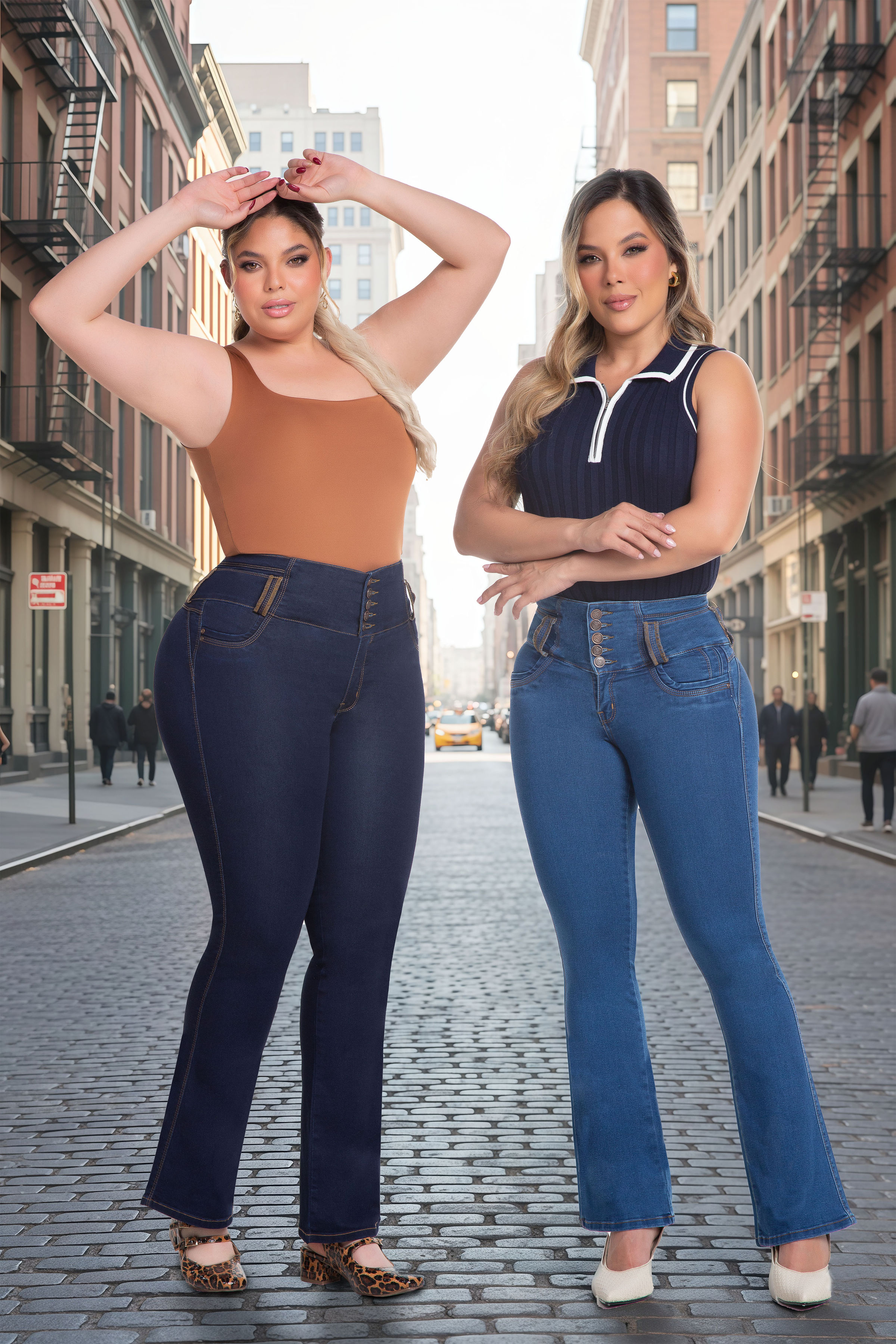 Jean bota campana, tiro alto 5 botones, con tipo de faja 360° y push up