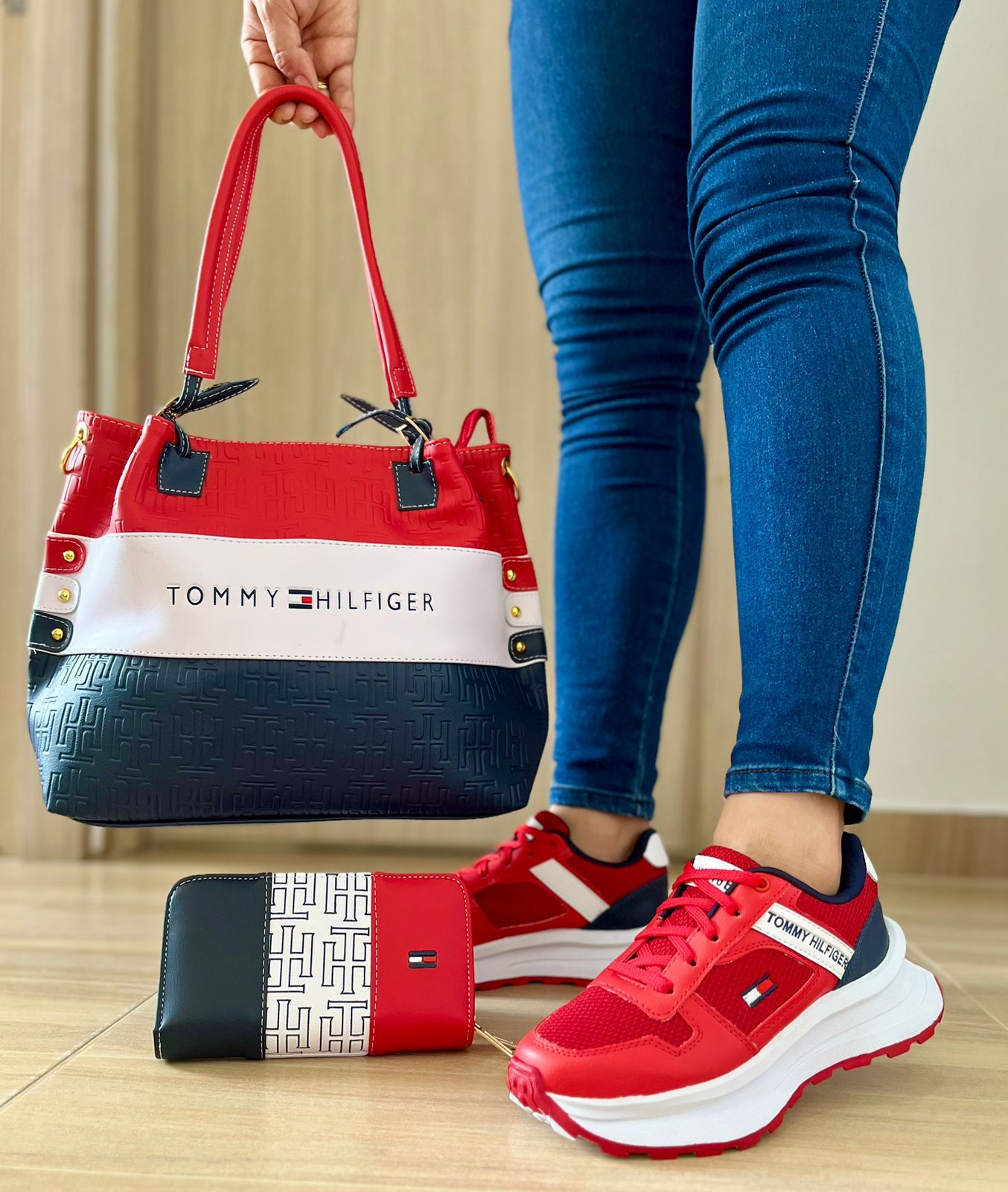 Bolso Tommy: poliés-ter resistente, ligero e impermeable. Diseño estructurado con franja icónica y correa ajustable.
