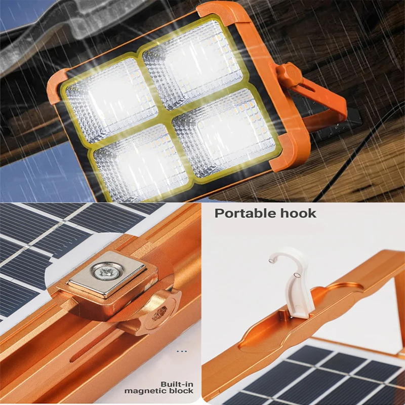 PANEL SOLAR DE SILICON POLICristalino: Adoptando un panel de carga solar de silicio policristalino con buena eficiencia de carga, esta luz de trabajo puede automáticamente cuando se trabaja al aire libre y recibe luz solar.